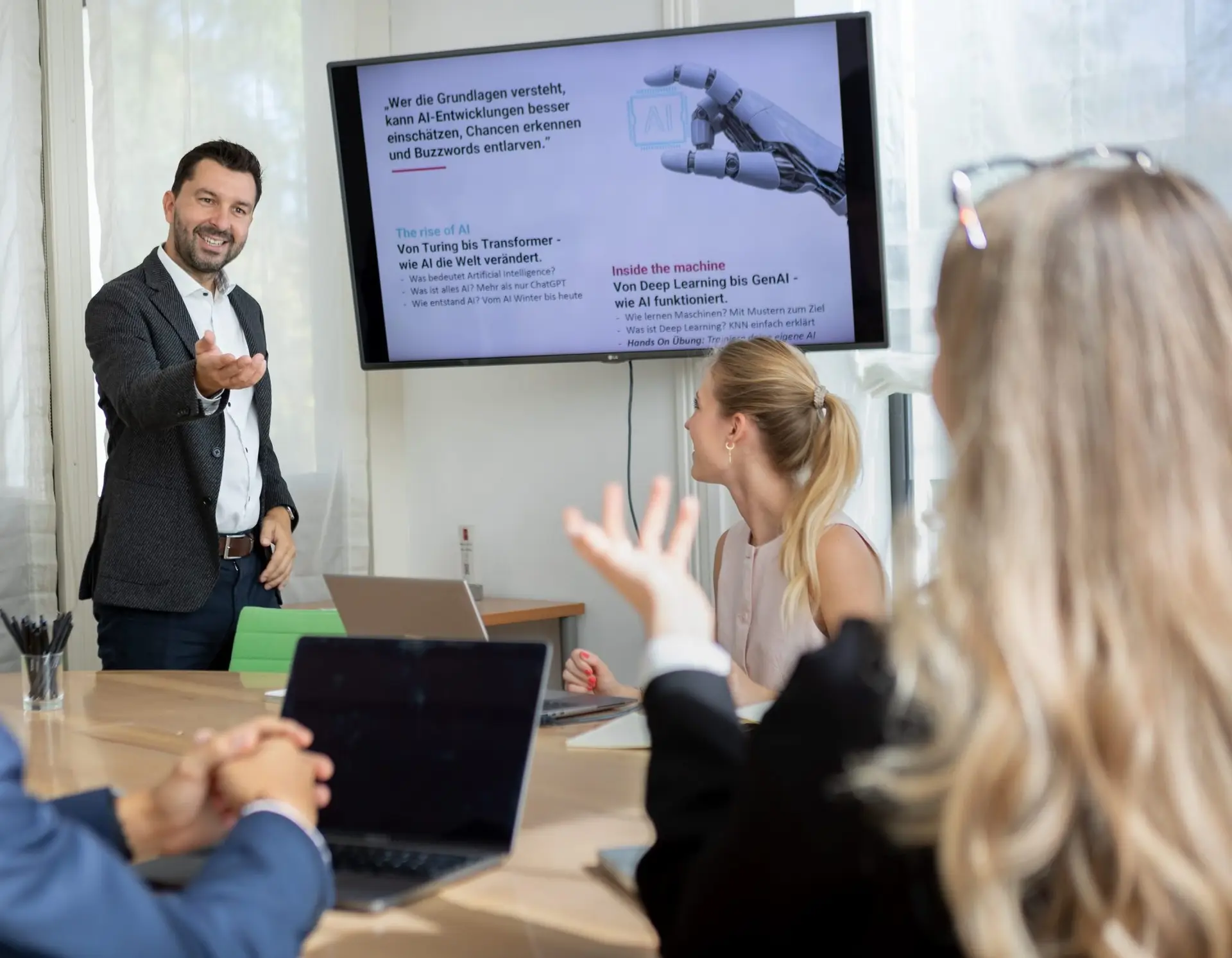 Unsere Workshops sind intensiv, interaktiv und auf das ausgerichtet, was wirklich zählt: praxisnahes Lernen mit direktem Mehrwert für den Alltag. Wir arbeiten mit Whiteboards, echten Business-Cases, klaren Methoden und viel Raum zum Ausprobieren. Die Teilnehmenden strukturieren, diskutieren und wachsen daran. Kein Theorie-Overload, sondern erprobte Beratungspraxis, kompakt und motivierend vermittelt.